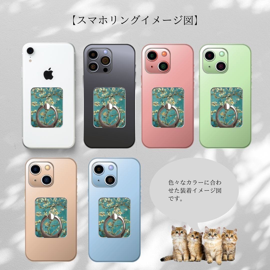 ゴッホの名画「花咲くアーモンドの木の枝」をモチーフにした絵画のスマホリング。このスマホリングは、手のひらに収まる大きさで、普段使いのスマートフォンにアートを取り入れた特別なひと時を楽しめます。
