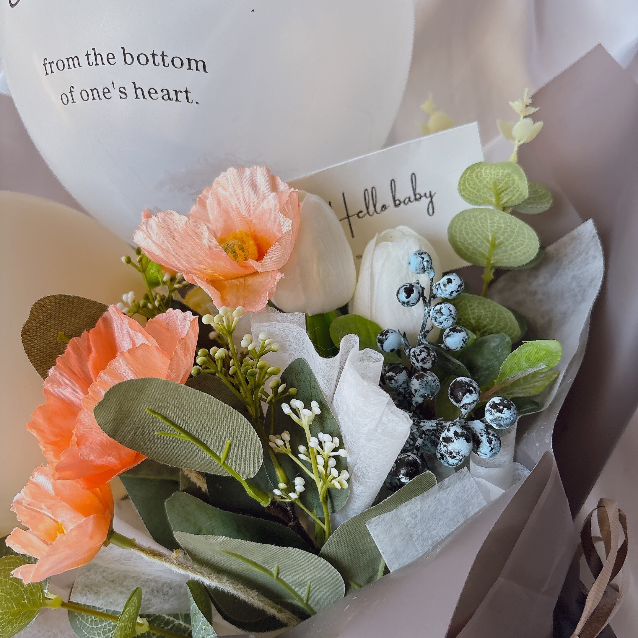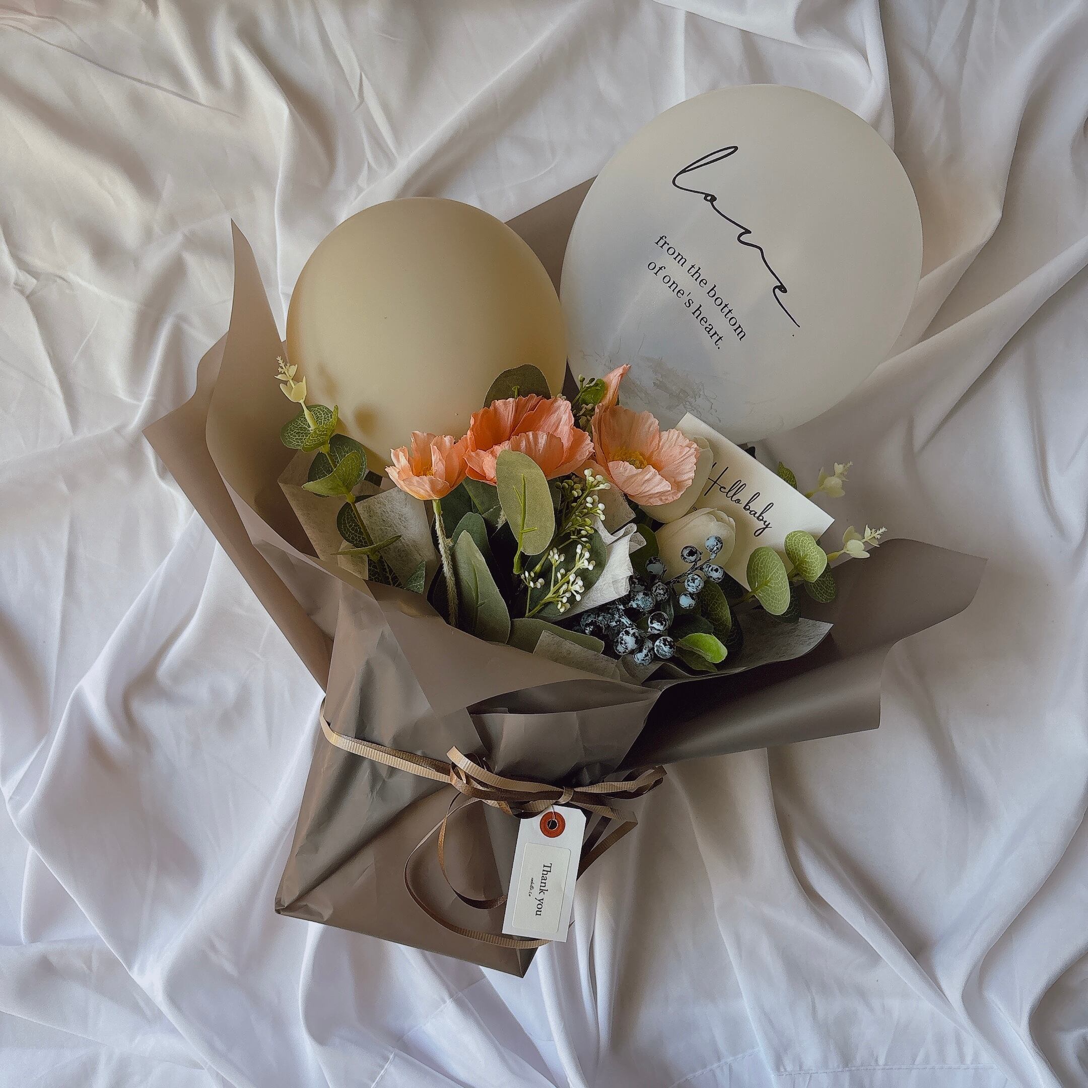 フラワーバルーンアレンジメントは、アーティフィシャルフラワーとバルーンを使用した、特別なギフトです。