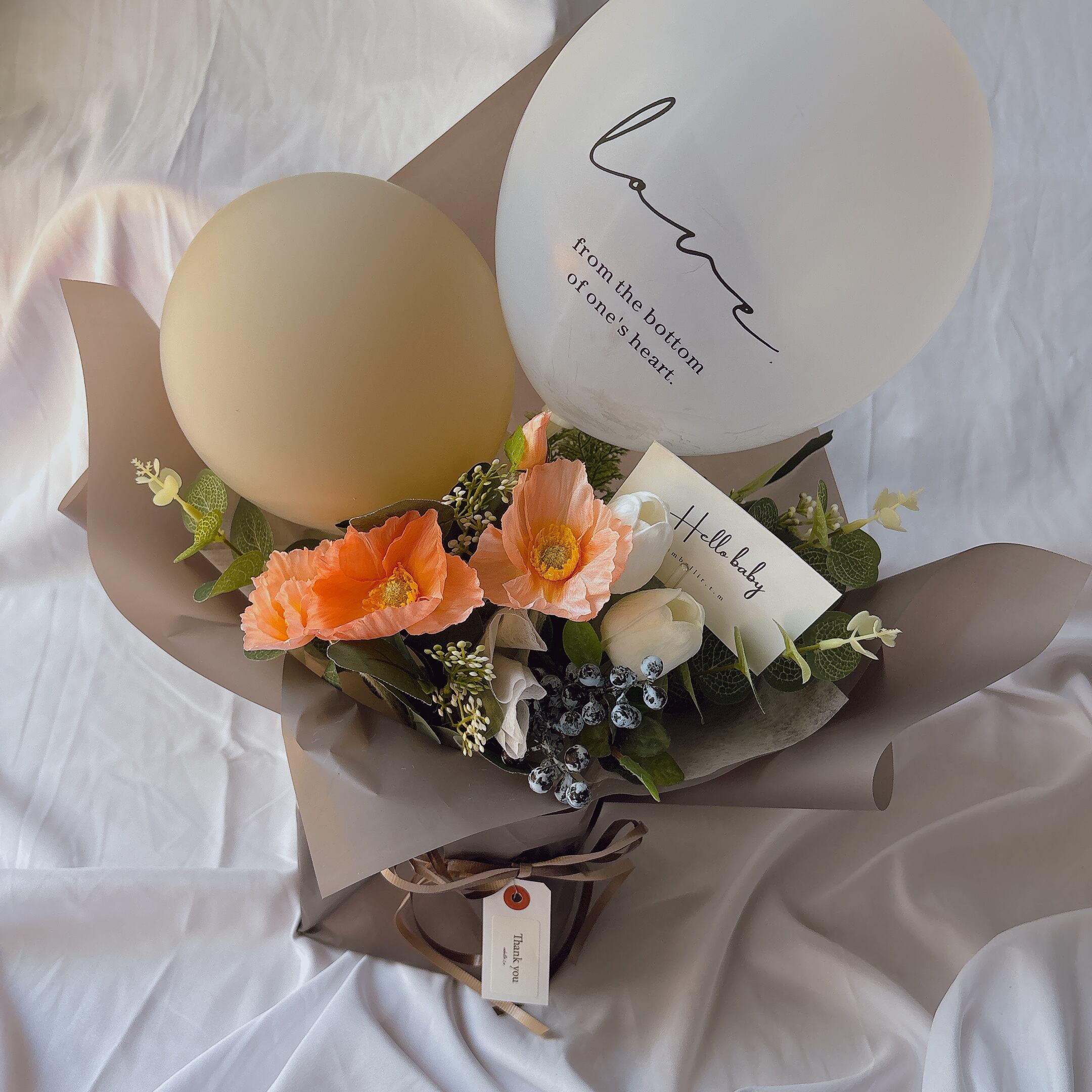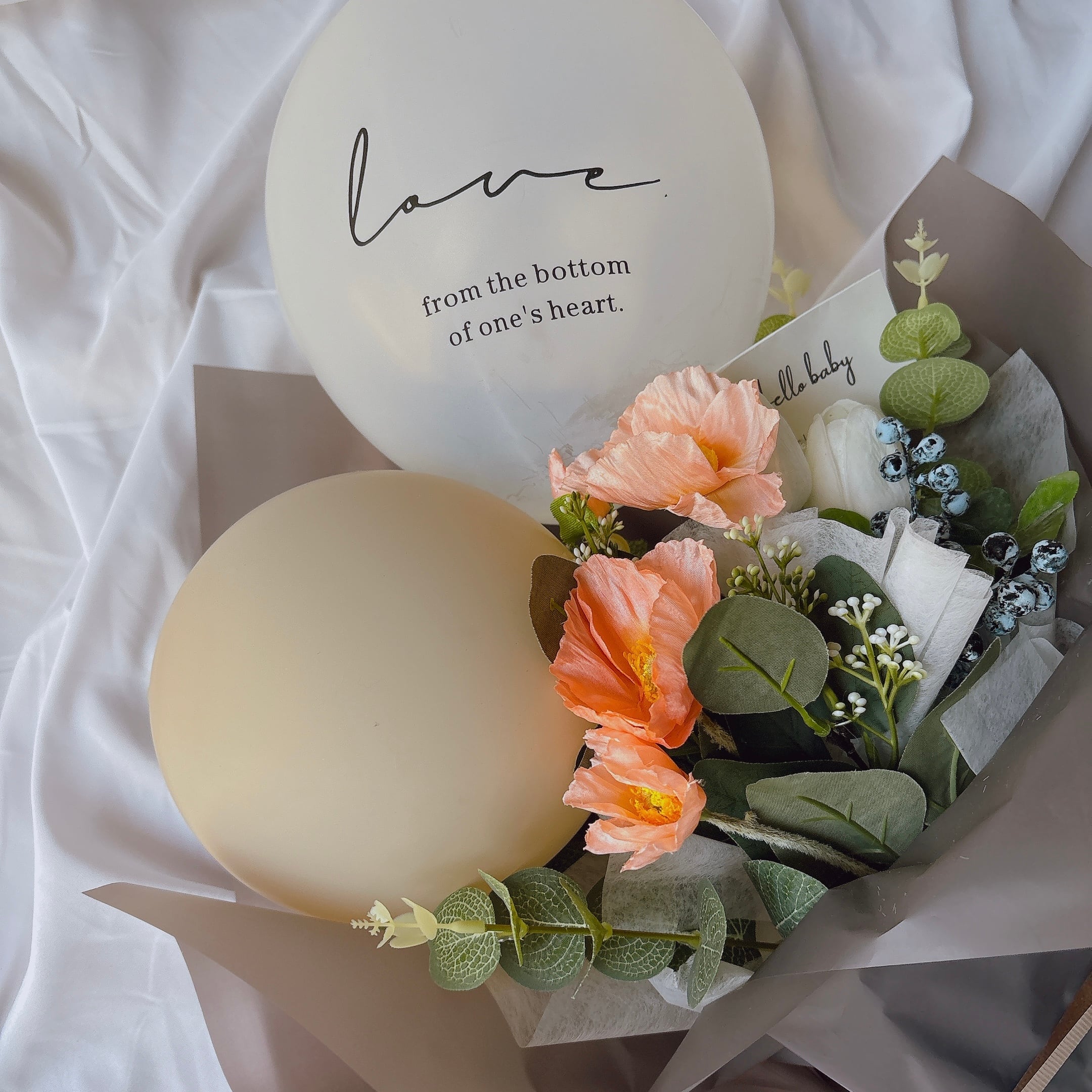 オシャレなデザインのバルーンと美しいお花で、あなたの気持ちを華やかにお届けしてはいかがですか。