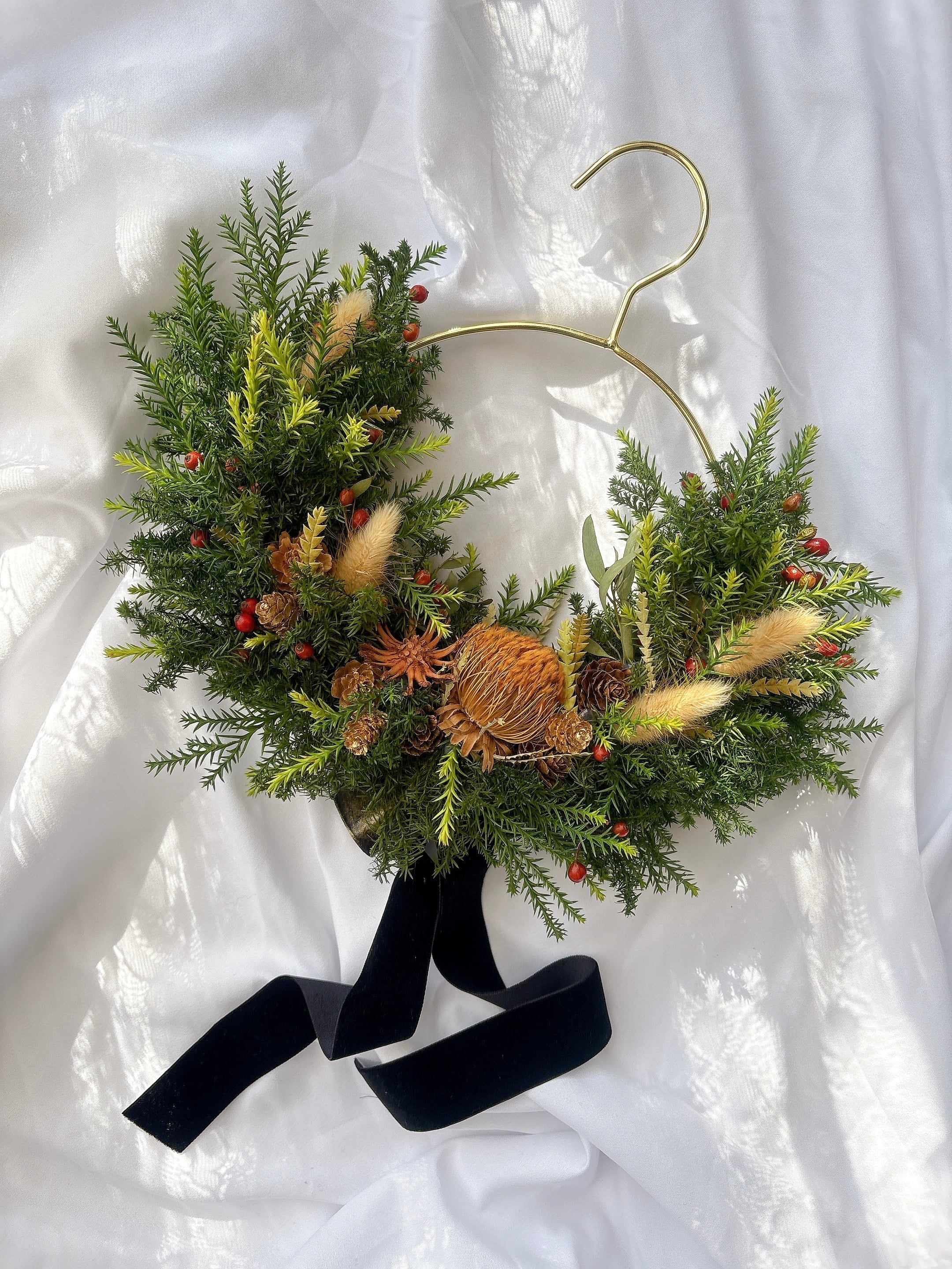 ゴールドハンガーのwinter wreatheは、冬の季節にぴったりな美しいリースです。