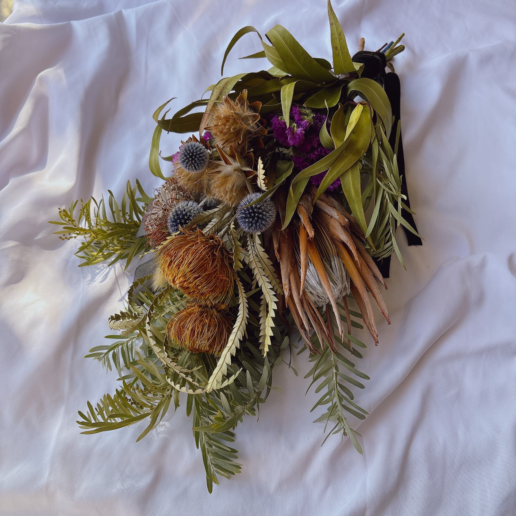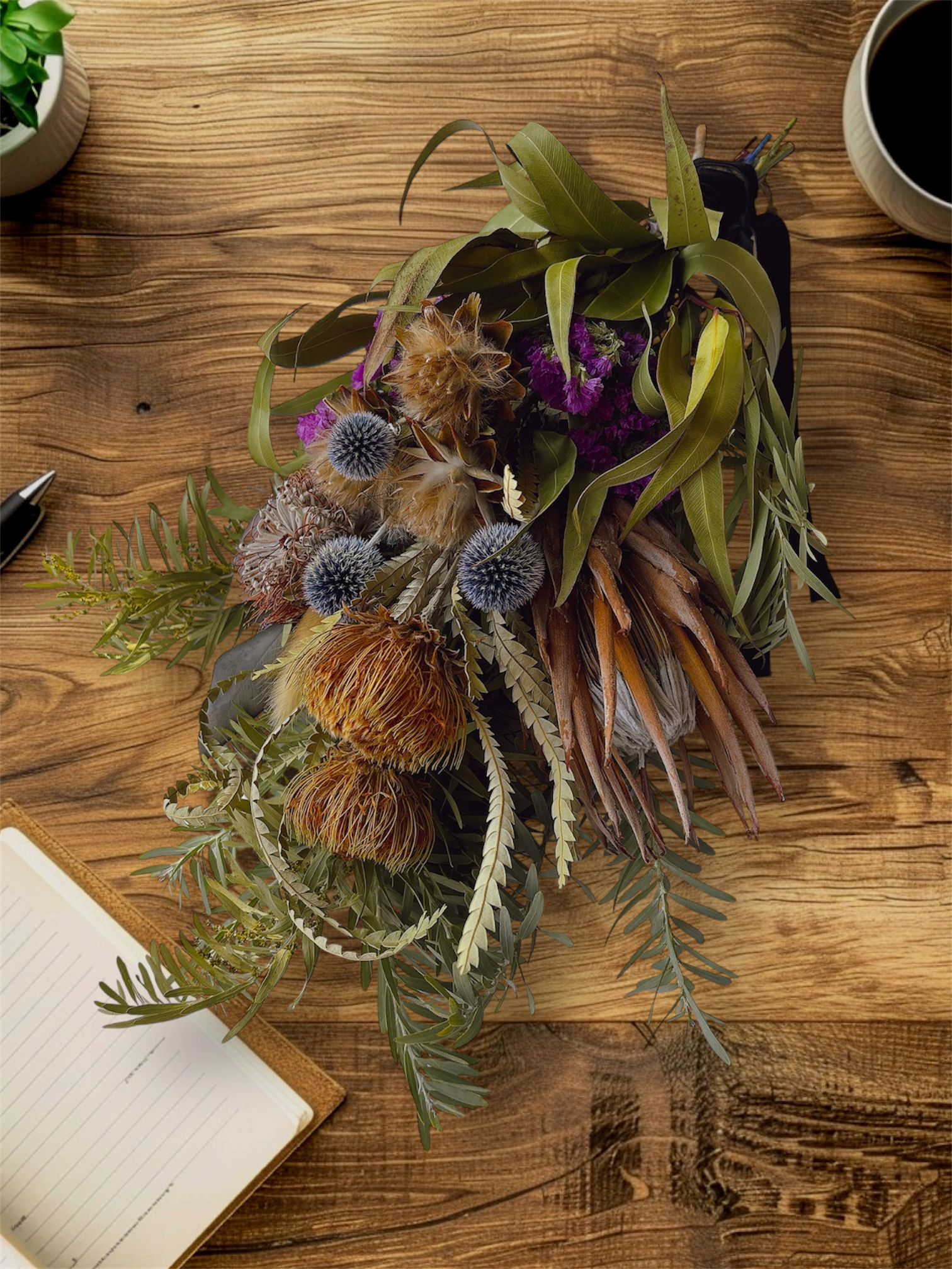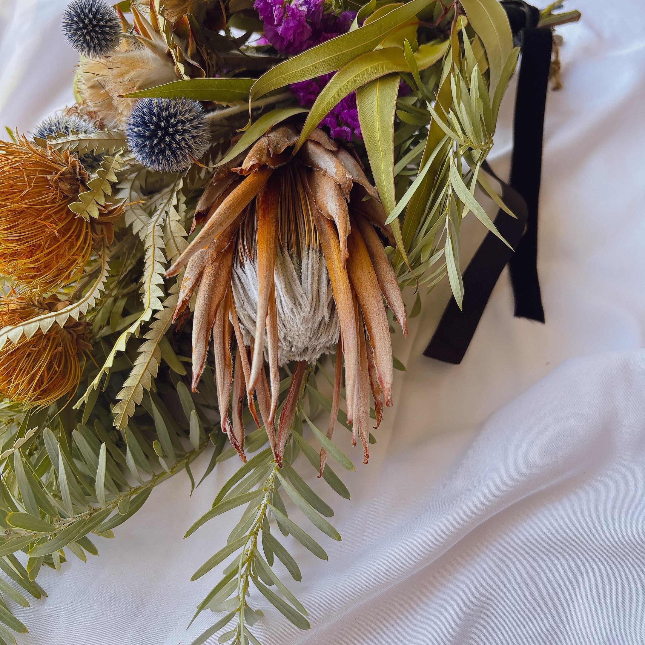 ・フォルモーサ、プロテア、瑠璃玉アザミ、ユーカリ、ミモザなど