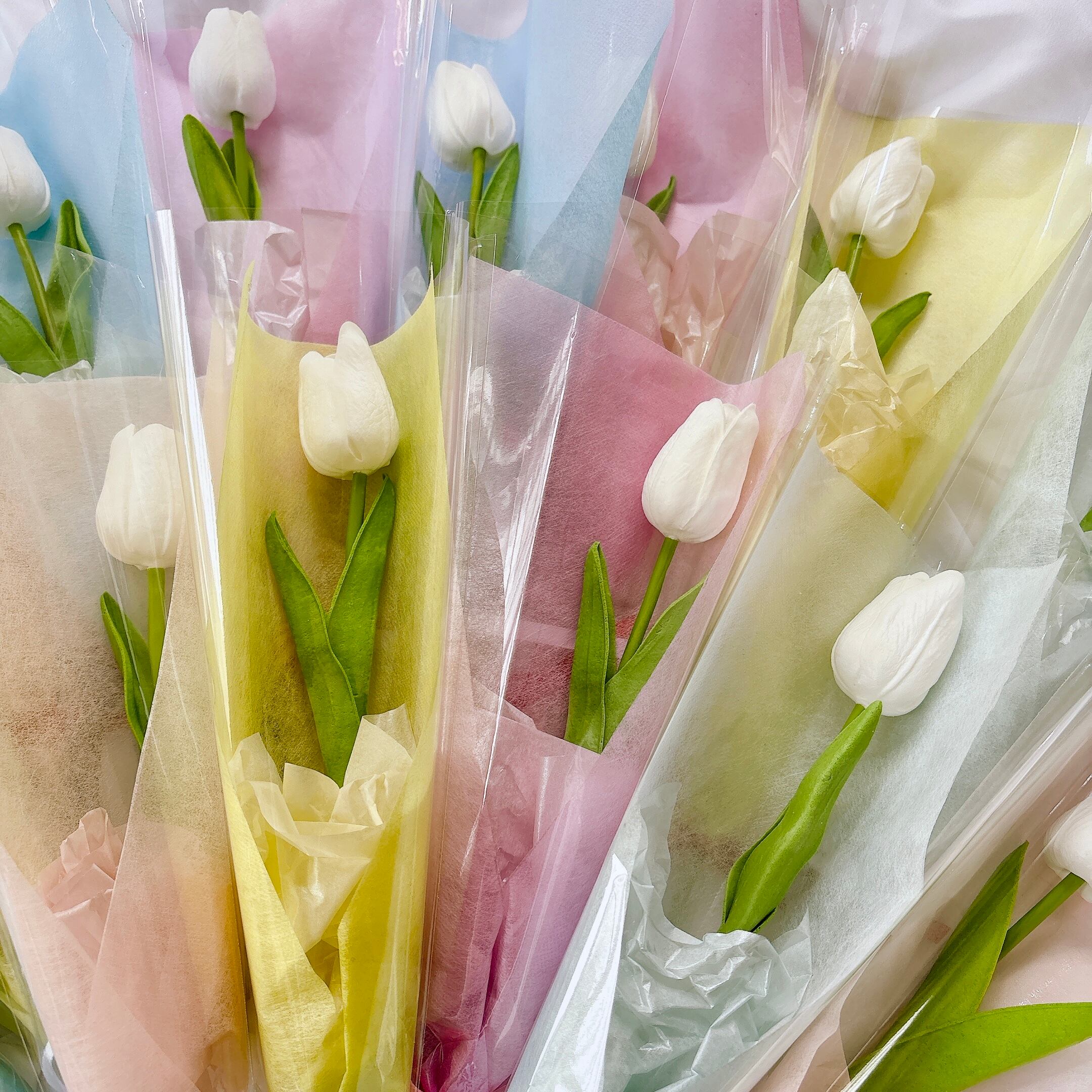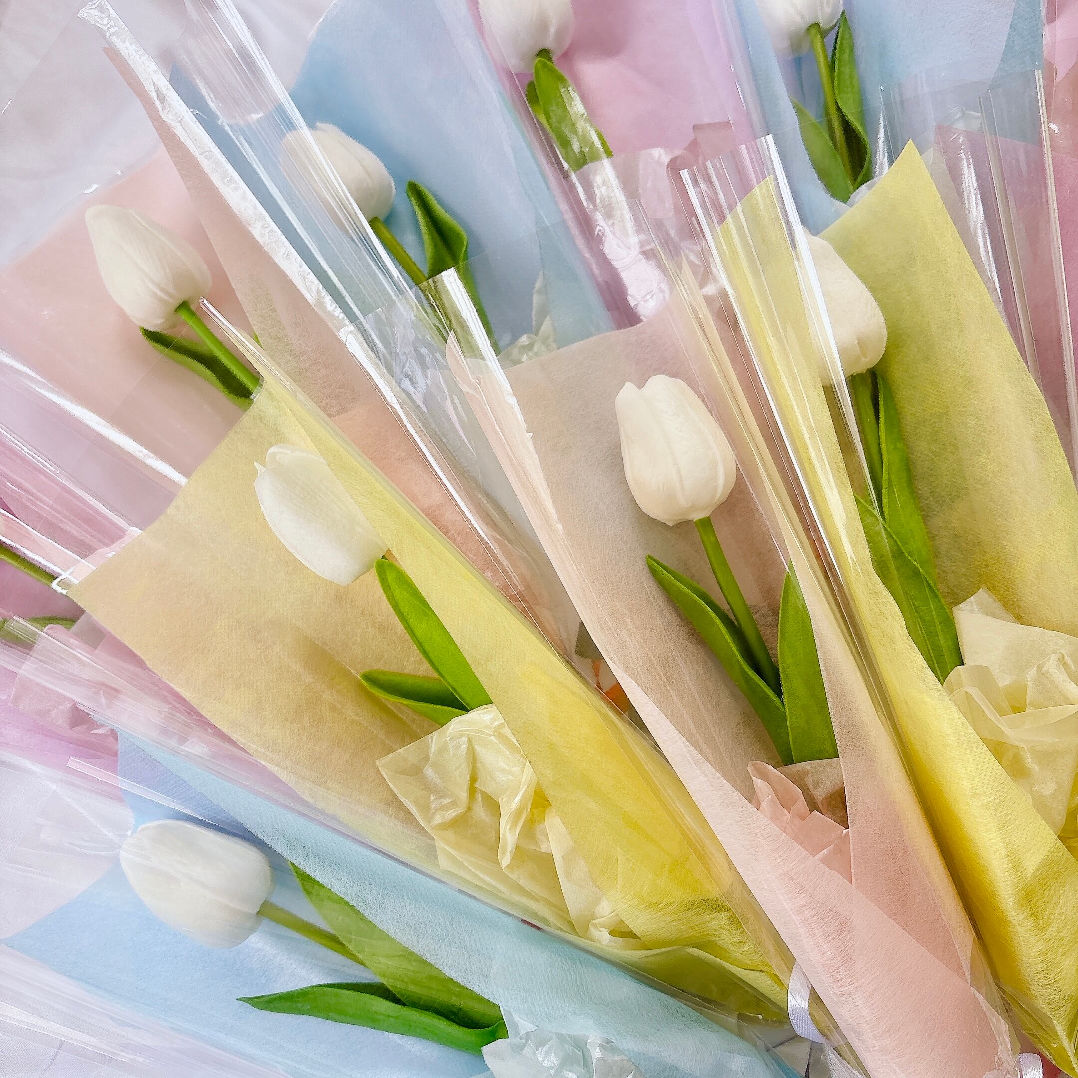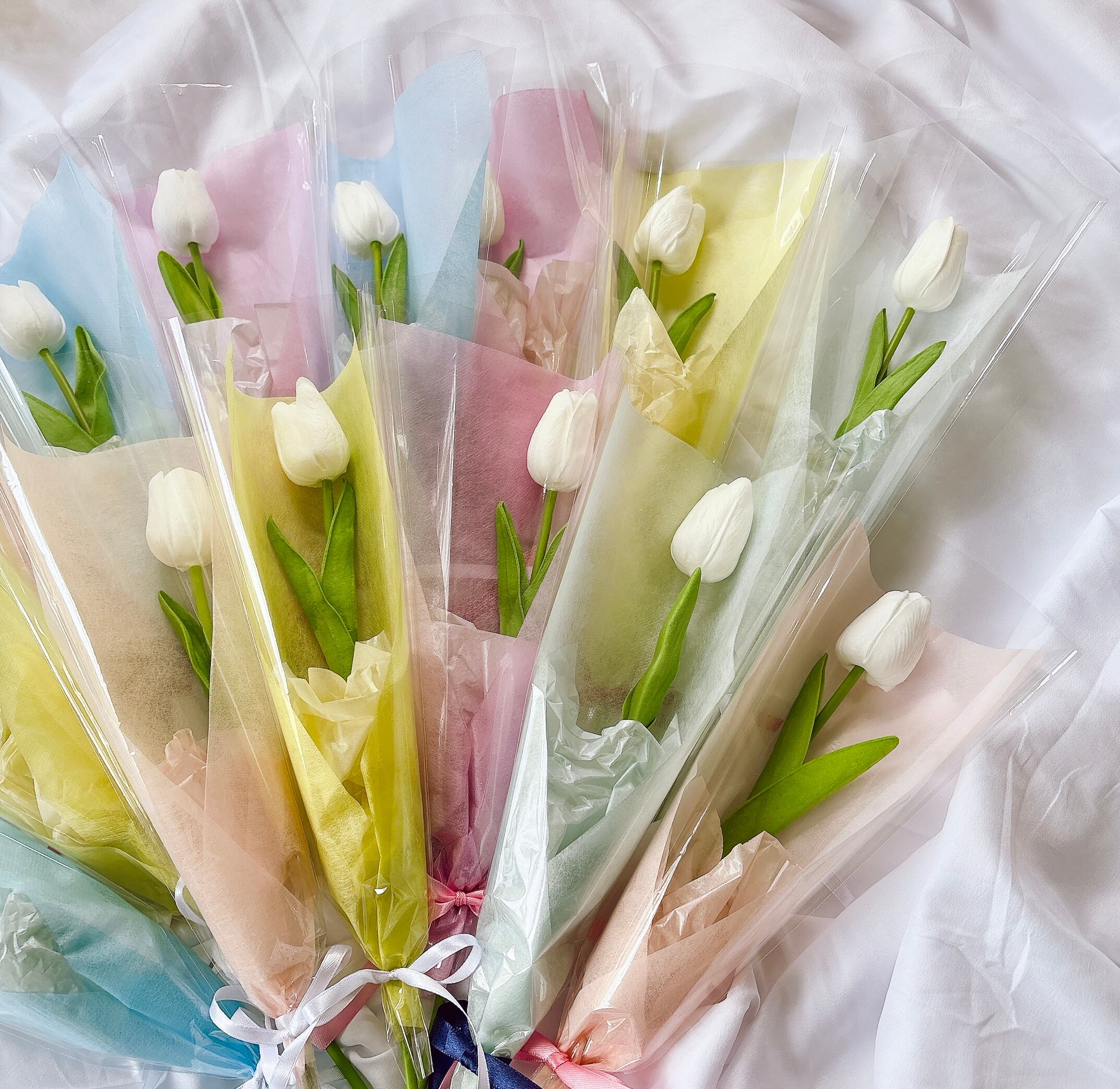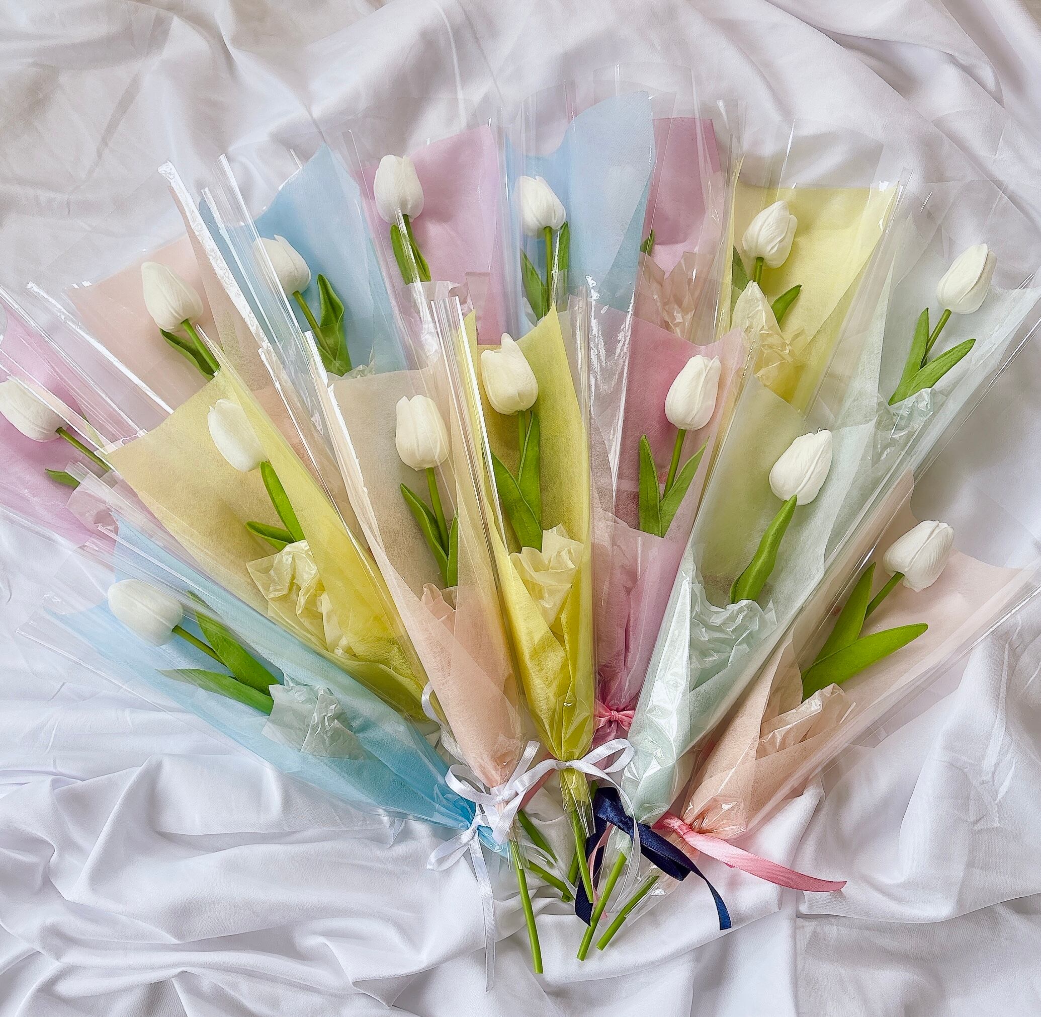 ホワイトチューリップ(アーティフィシャルフラワー)は、ウェディングアイテムとしてはもちろん、卒業・入学のお祝いギフトとしても大変ご好評いただいています。