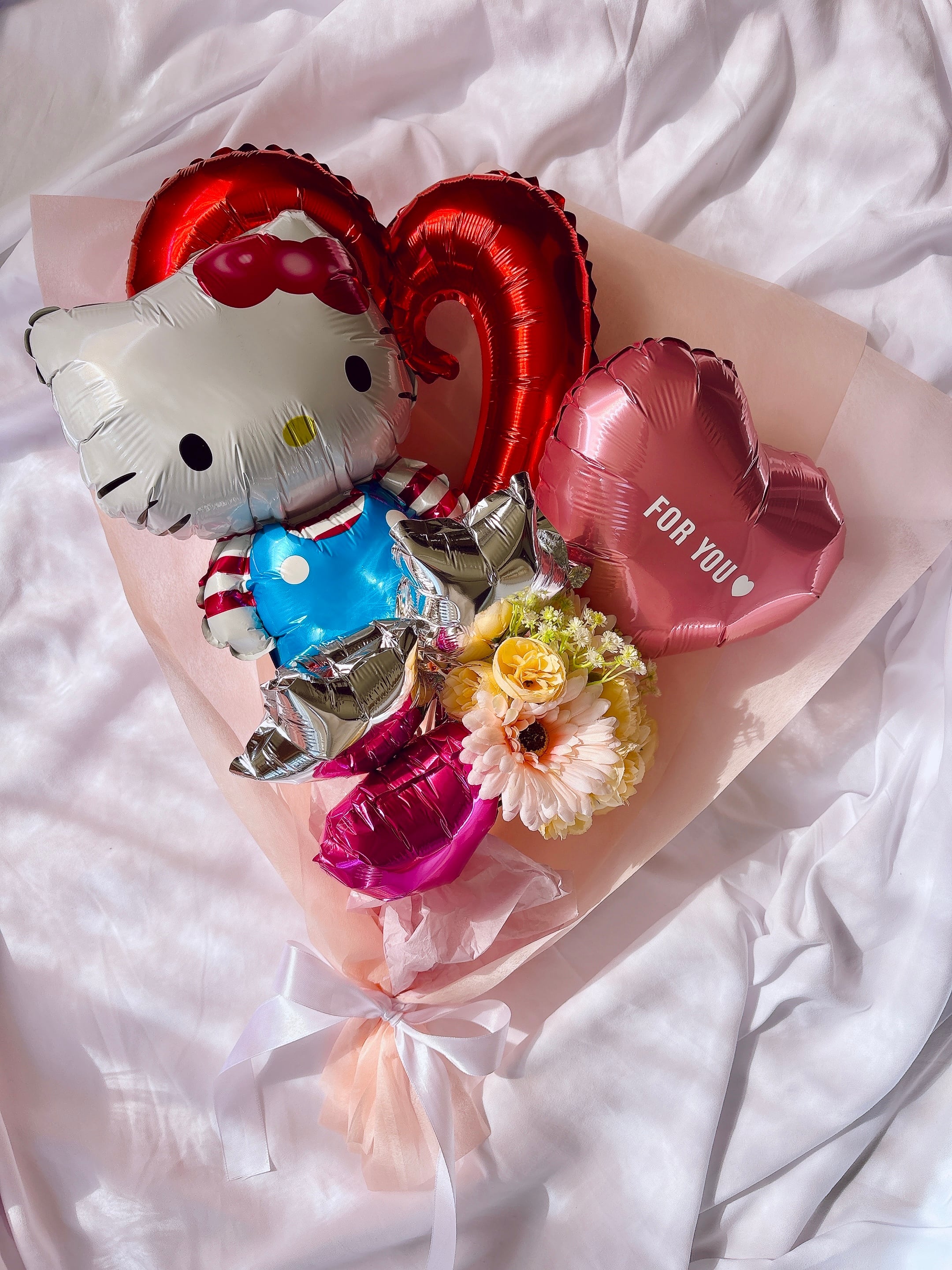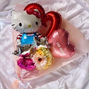 キティのフラワーバルーンブーケ(受注制作・無料ラッピング付き)