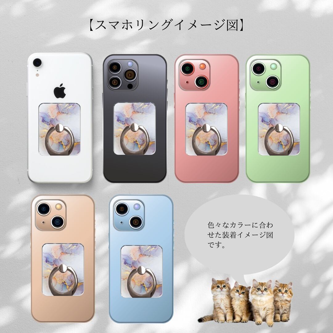 スマートフォンを気軽に持ち運ぶのに便利なスマホリング。このリングは、落ち着いた色合いで統一されたニュアンスカラーが魅力的。