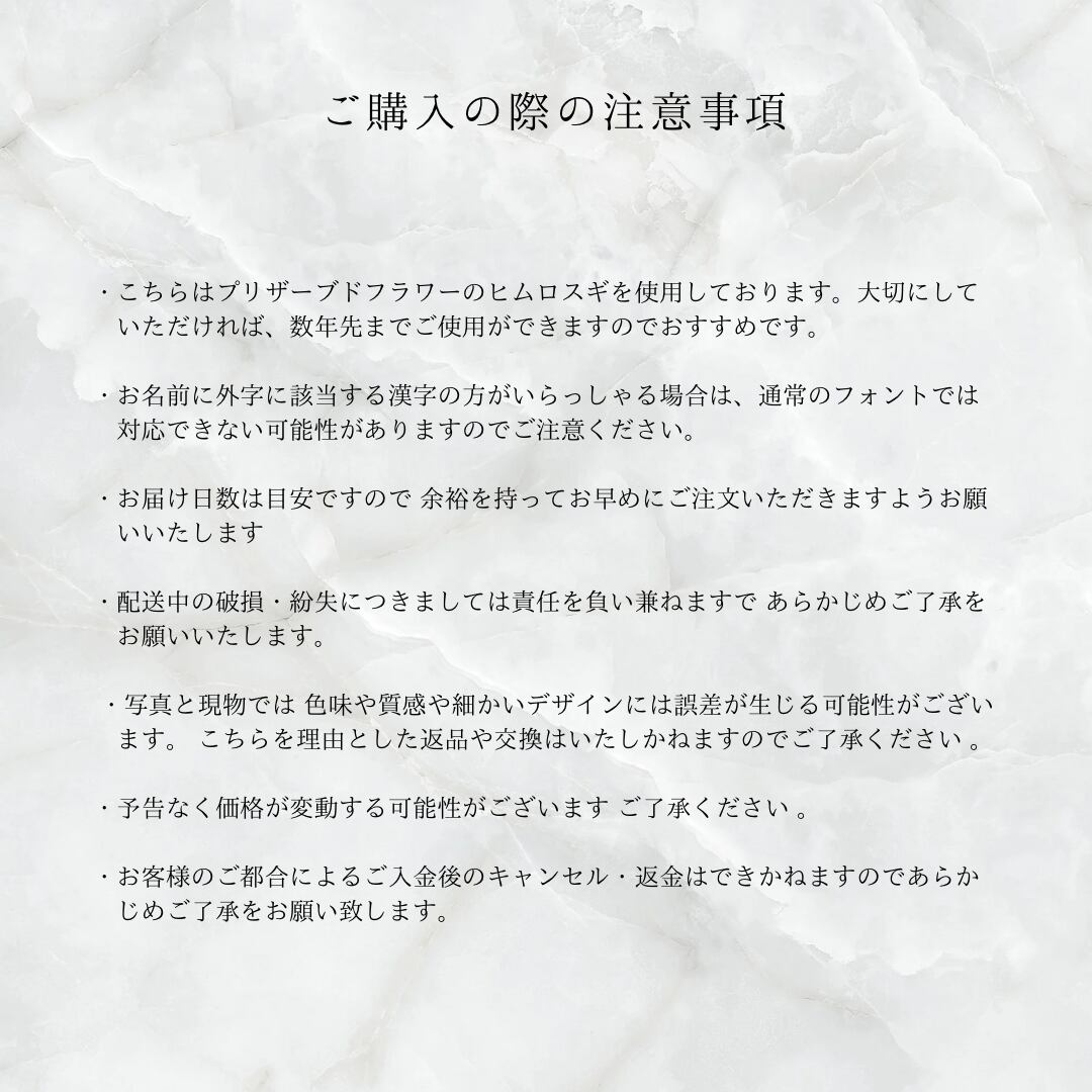 ・プリザーブドのヒムロスギをベースに使用しておりますので、大切に扱っていただければ数年先までご使用いただけます。
